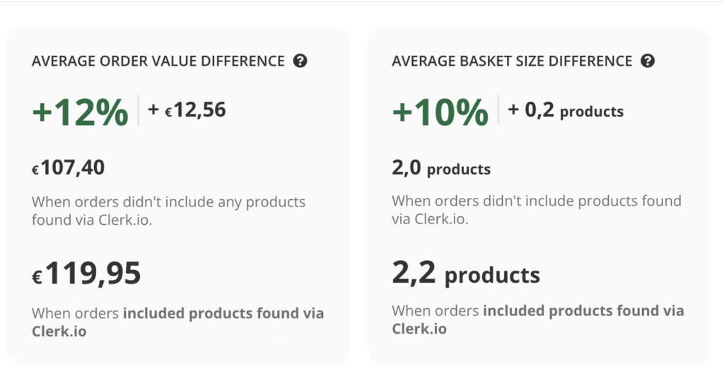 Strategisch meedenken: We analyseerden de volledige campagnestructuur en adviseerden over de juiste balans tussen merkzichtbaarheid en directe conversies. Daarnaast keken we naar slimme inzet van on-site technologieën zoals Clerk.io, om AI-gestuurde productaanbevelingen en geoptimaliseerde zoekfunctionaliteit strategisch in te zetten.
